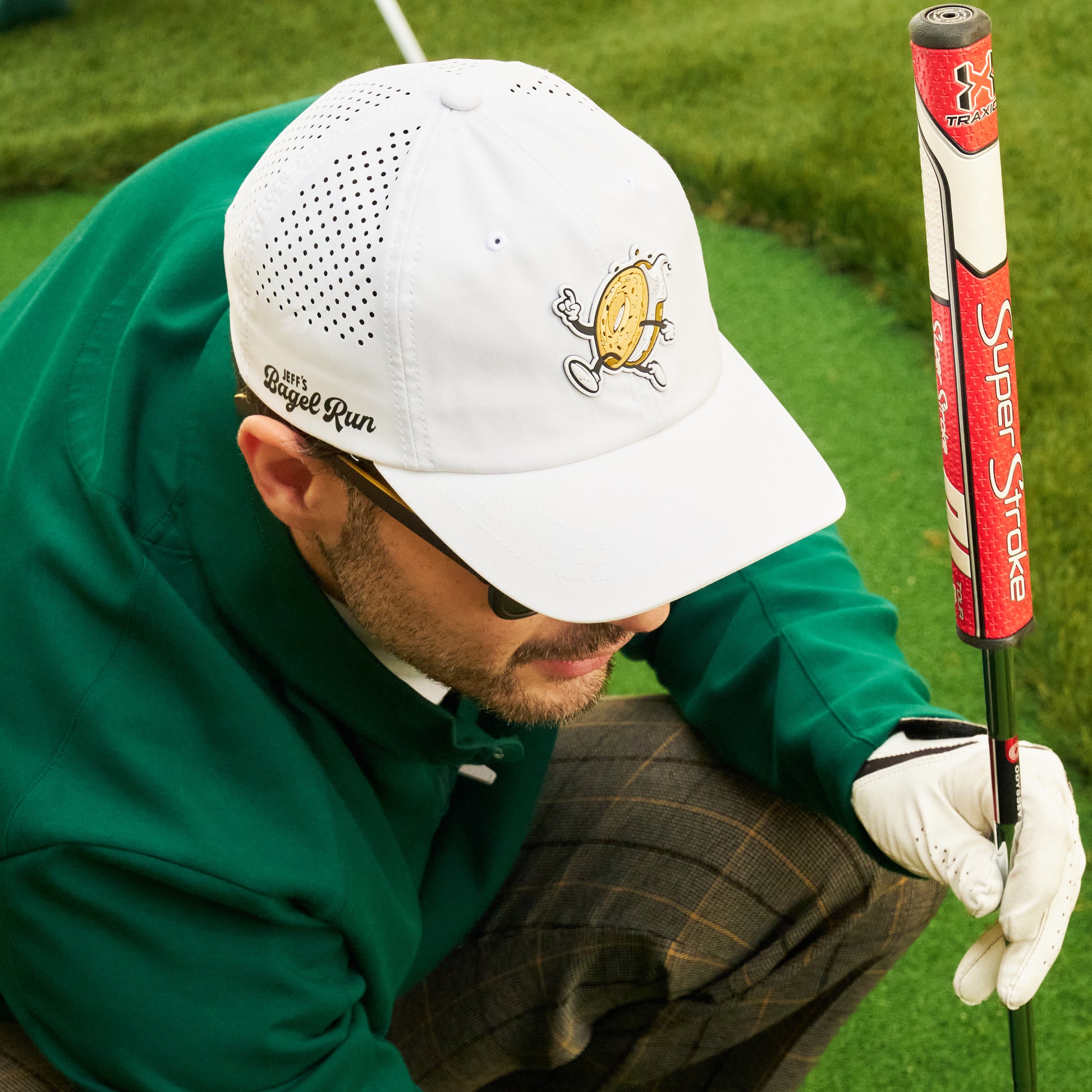 Our Running Bagel Guy is on the move — and now he’s on your hat. This white Branded Bills cap is fresh, comfy, and ready to roll wherever your day takes you.