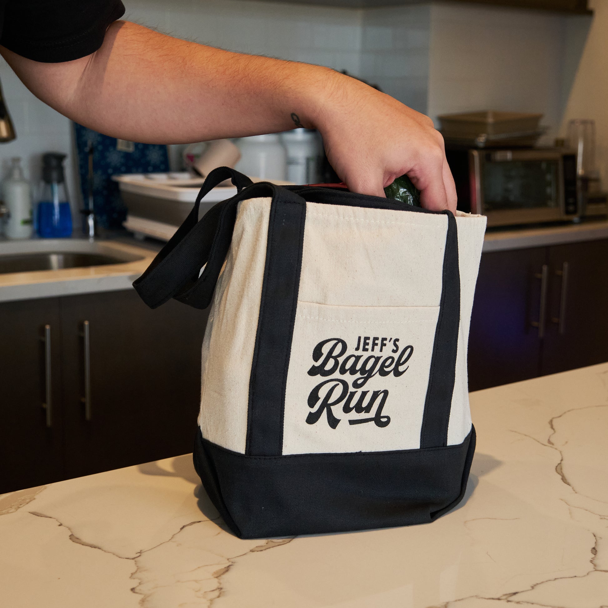 Take your bagel love on the go! Our eco-friendly tote is made from 70% recycled cotton canvas and 30% polyester, making it as kind to the planet as it is handy for your daily adventures. With a front pocket for the little things and sturdy 18" handles, it’s perfect for groceries, books, or even a quick bagel run.
